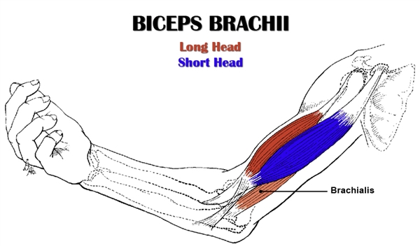 ダンベルカールは前腕が回外させながら動作できるため、短頭がメインとなります。